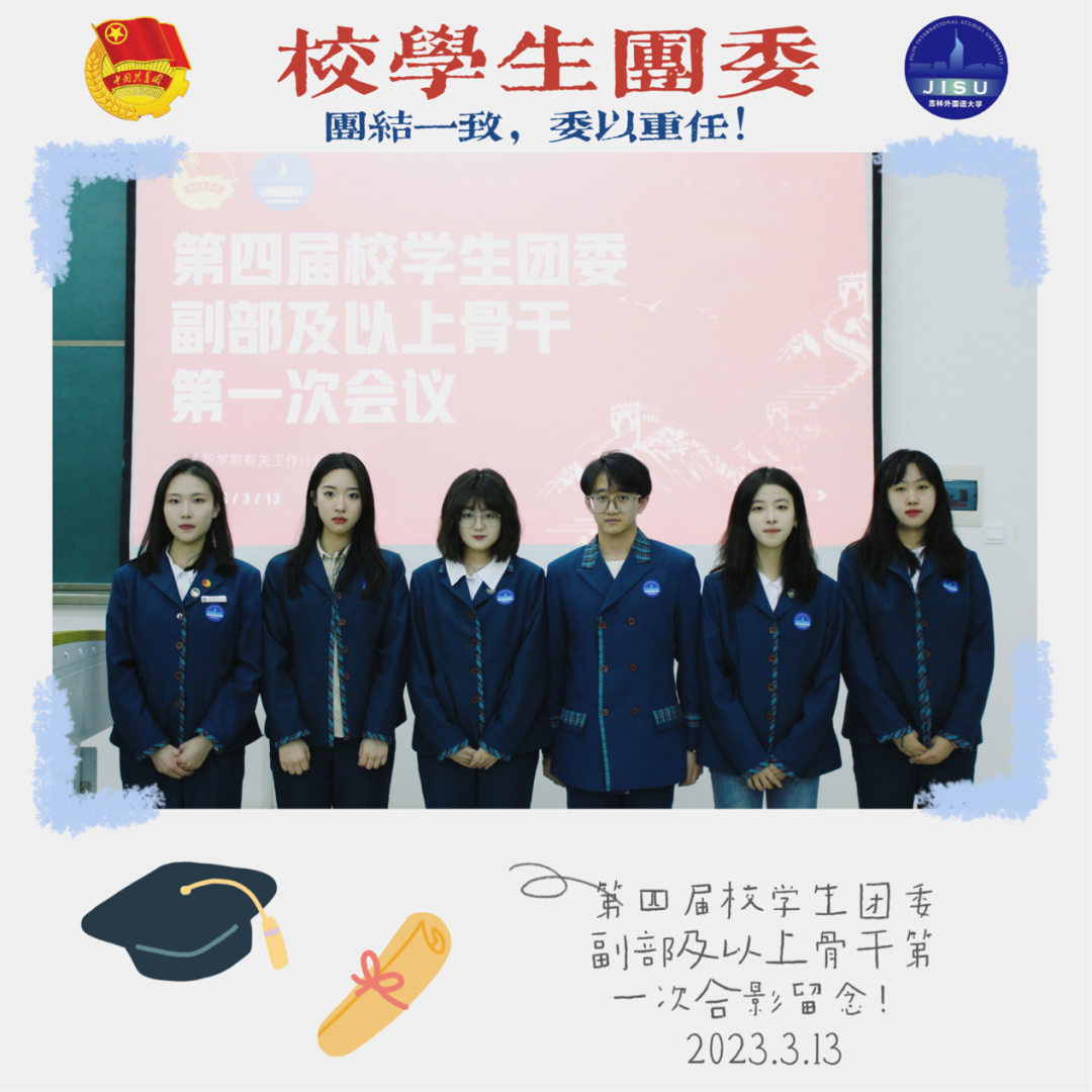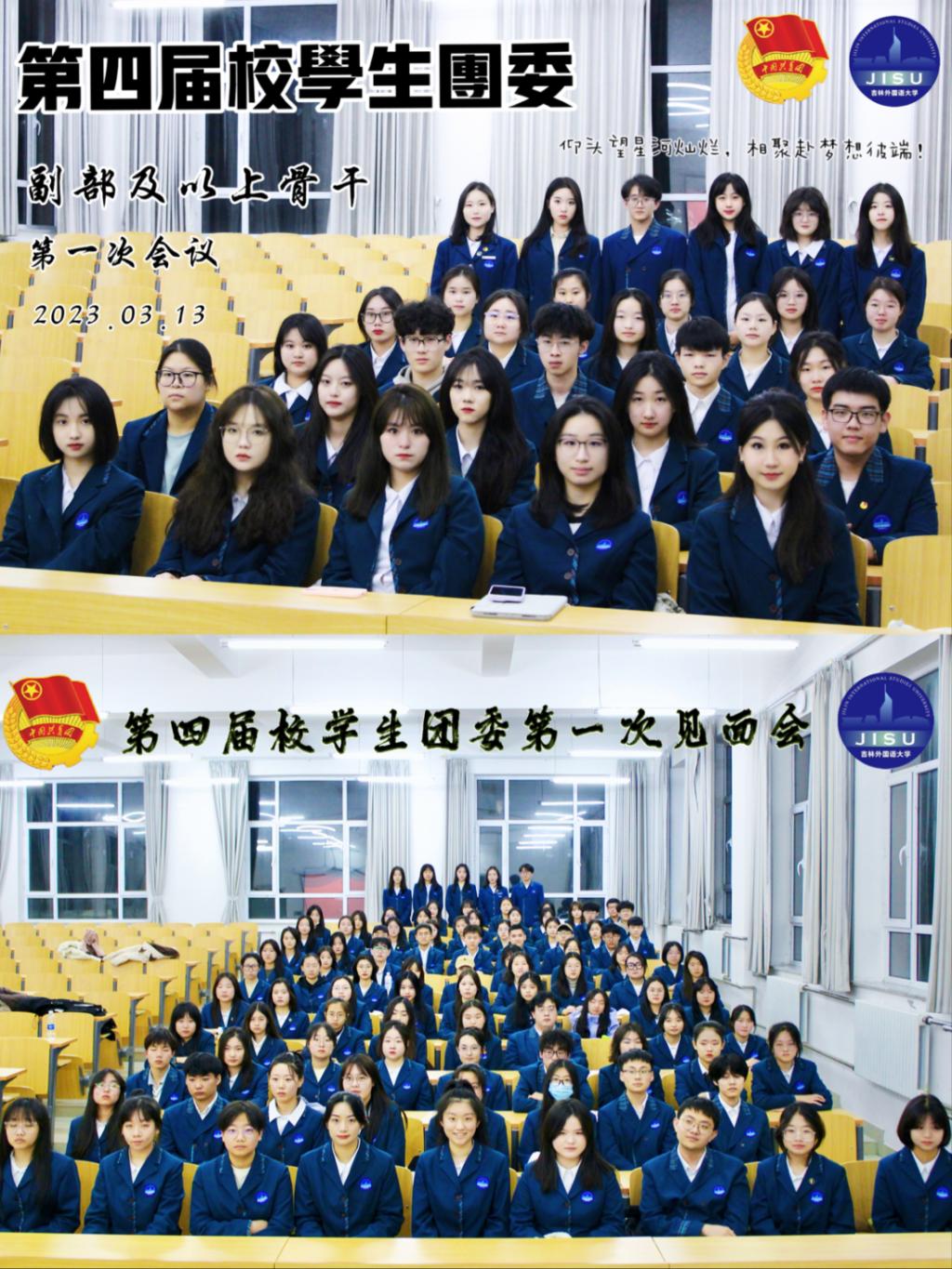 “青年如初春,如朝日,如百卉之萌动,如利刃之新发于硎,人生最可宝贵之时期也。”3月15日晚,吉林外国语大学校学生团委在阶14首次召开了全体学生干事见面大会。本次见面会由校学生团委副书记赵相鹏同学主持。本次大会旨在帮助干事们互相熟悉,了解各部门工作运作情况并明晰作为学生团委的一员需要努力的方向。