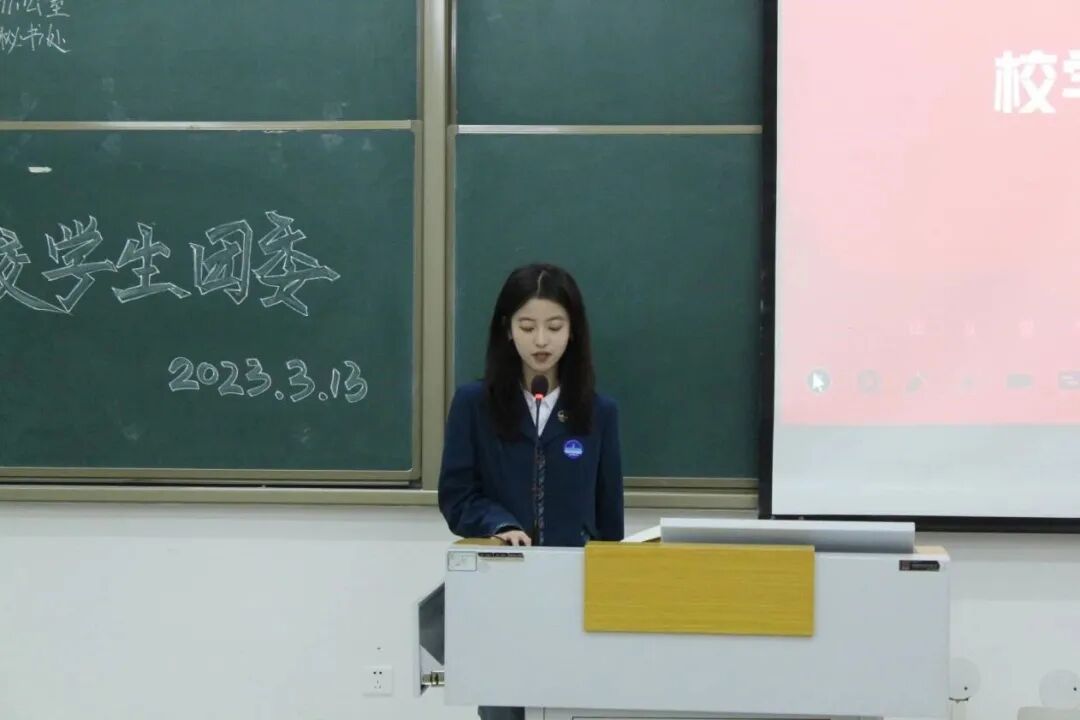 干部管理中心主任杨钰婷同学提出:身为校团委成员,首先要约束好自己,严格遵守学校的规章制度,坚决杜绝彩发彩甲现象,不做违反校纪校规的事情,为校团委树立一个良好的形象。并且能积极参与活动,认真完成工作,对于下发到手中的文件一定要做到严格的保密。最后,杨钰婷同学表示:很高兴在校团委与大家相遇,希望在接下来的时间里与各位愉快相处,共同成长。