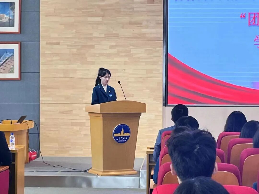 大会第五项,由团校学员代表李金净同学发言致辞,李金净同学表示:作为吉外学子,我们要学好外国语,做好中国人,讲好中国故事,传递中国精神;作为校级团学组织中的一员,团校培训可以很好的帮助我们提升自己、充实自己、完善自己。爱国荣校已深深印在心中,新时代青年的我们只有不断扩展国际视野,尊重时代规律,厚植爱国情怀,认同话语体系,才能成为担当中华民族复兴大任的时代新人!