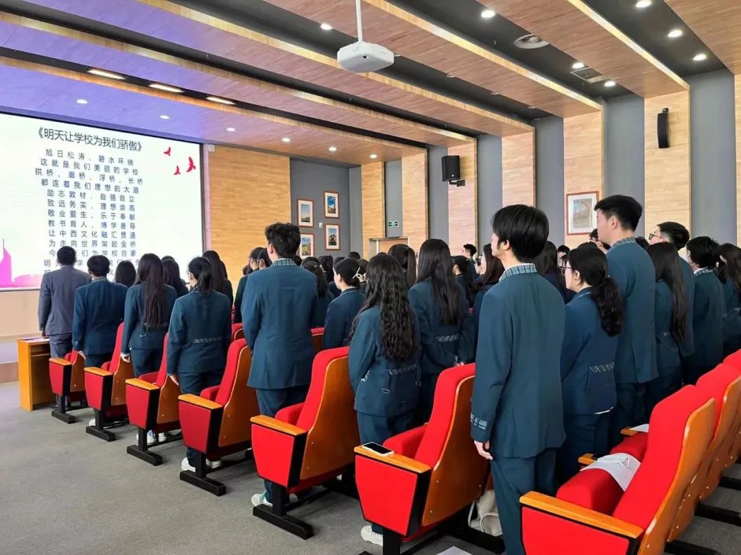 大会第八项,全体成员奏唱校歌。