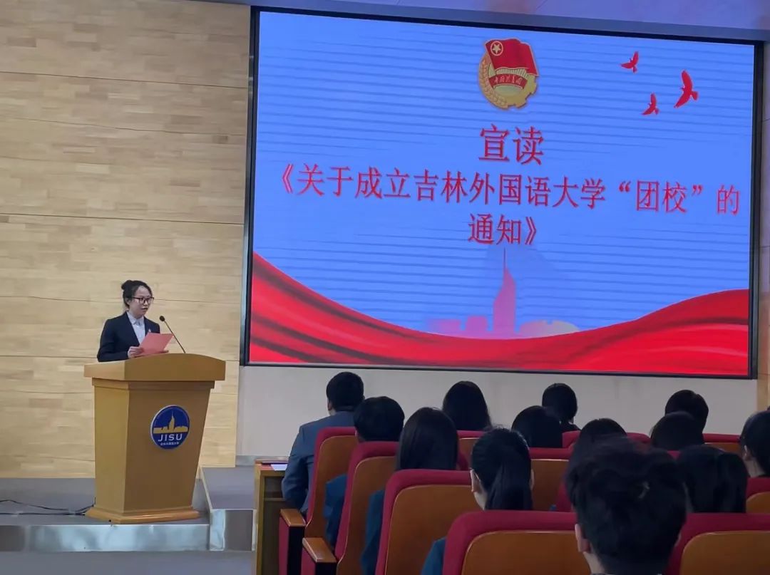 大会第二项,由校团委王雪娇老师宣读《关于成立吉林外国语大学团校的通知》。学员们认真聆听,入耳入心。