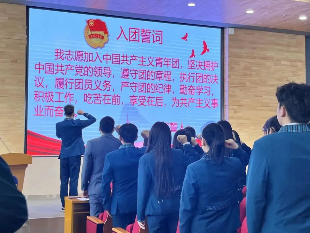 大会第七项,由校学生会轮值主席吕金澄带领全体人员重温入团誓词,带领全体学员高举右拳,进行庄严宣誓。铿锵有力的誓词激励着青年传承红色基因,不忘初心,紧跟党的脚步,以不畏艰难、勇于担当的姿态,迎接新时代的挑战。