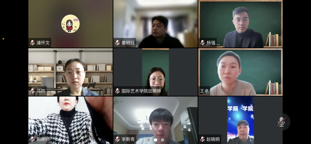 国际艺术学院为响应学校号召,鼓励学生提高创新精神,形成良好的“以赛促学”风气,2023年4月4日早八点通过线上方式进行了国际艺术学院“挑战杯”项目初评。参与此次评选的老师有国际艺术学院副院长刘婷婷老师、副院长杨强老师、视觉传达设计专业系主任赵晓明老师、视觉传达设计专业教师李斯奇老师、田婉婷老师、干卓老师、姜明钰老师,会议由国际艺术学院学工办教师主持。