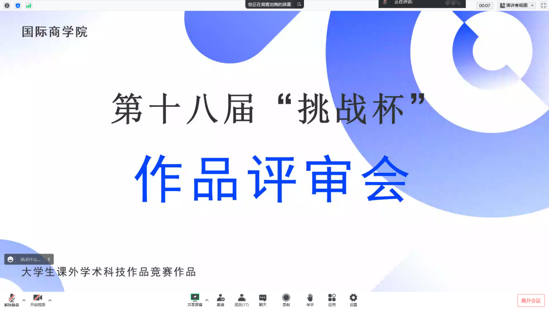 国际商学院于4月6日18:30在线上召开了第十八届“挑战杯”作品评审会。本次会议由国际商学院团委书记许德玲老师主持,邀请了我院学科带头人许正良老师、金融系主任张鼎立老师、国贸系主任孙秀静老师、电子商务系安琪老师、会计系李菲菲老师担任本次第十八届“挑战杯”大学生课外学术科技作品、竞赛作品、国际商学院作品评审会评委,本次活动有6支队伍参与答辩。