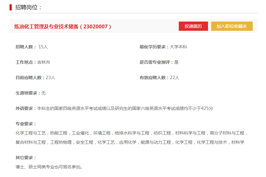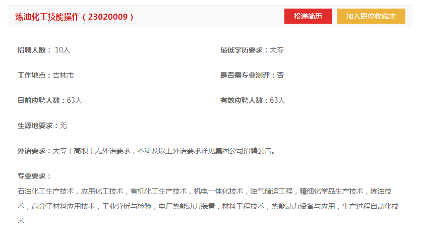 1、投递简历:简历投递时间2023年4月24日至2023年5月10日,在中国石油高校毕业生招聘平台登录注册(https://zhaopin.cnpc.com.cn/),选择吉林石化公司相应应聘职位,完成简历投递;
