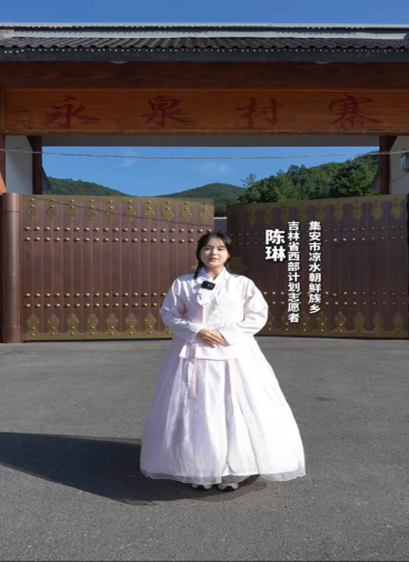 陈琳于2024年8月积极响应国家号召,投身吉林省大学生志愿服务西部计划“卫国戍边”项目。在服务期间,她先于永泉村寨参与宣传及朝鲜族民俗文化展示馆讲解工作,数次接待省、市级领导、旅游团与研学团;后于凉水朝鲜族乡政府党建办公室轮岗轮训,投身农村党建、抖音宣传账号运营工作,将大学专业知识转化为实践效能,高效落实各项任务。